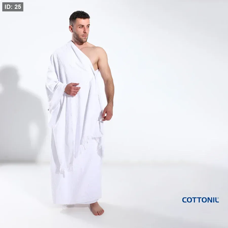 إحرام قطونيل 100% قطن – عملي ومريح بتفاصيل مدروسة 🤍🕋 إحرام مصنوع من 100% قطن طبيعي بخامة فوطة ناعمة وعالية الامتصاص، يمنحك راحة وثبات أثناء الارتداء لفترات طويلة. المميزات: ✔ 100% قطن طبيعي ✔ خامة فوطة بامتصاص عالي ✔ القطعة العلوية مزودة بكبسات بدل الدبوس لثبات وأمان أكثر ✔ القطعة السفلية تحتوي على سكوتش (فيلكرو) بدل الحزام لسهولة التثبيت ✔ لا يسبب تحسس للبشرة ✔ مناسب للحج والعمرة تصميم عملي يريحك من استخدام الدبابيس أو الأحزمة ويمنحك ثبات أفضل وحركة مريحة.